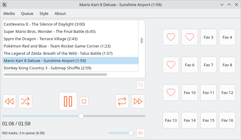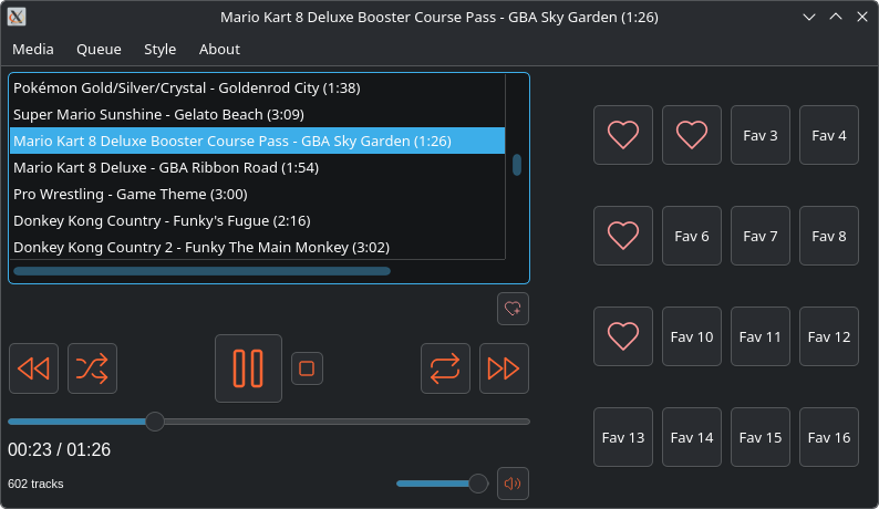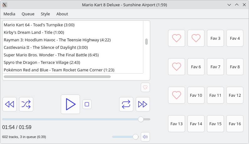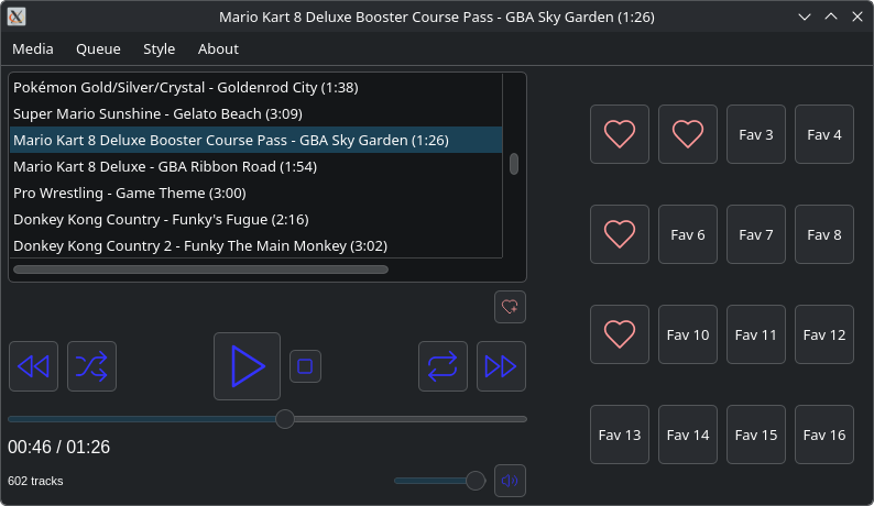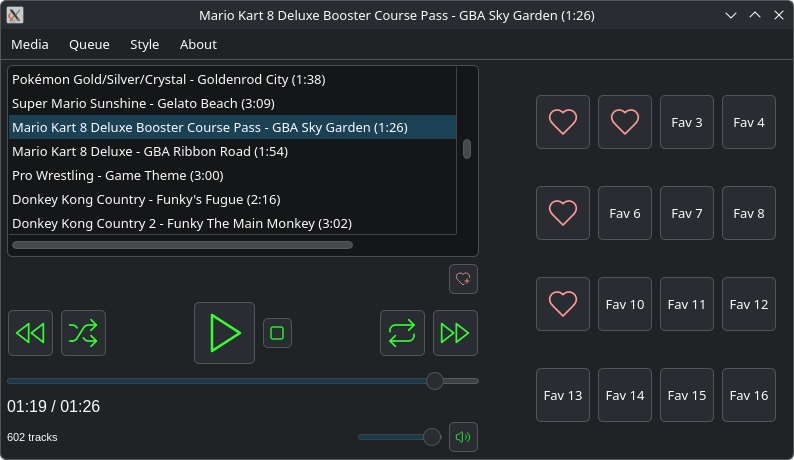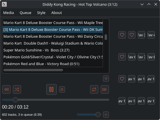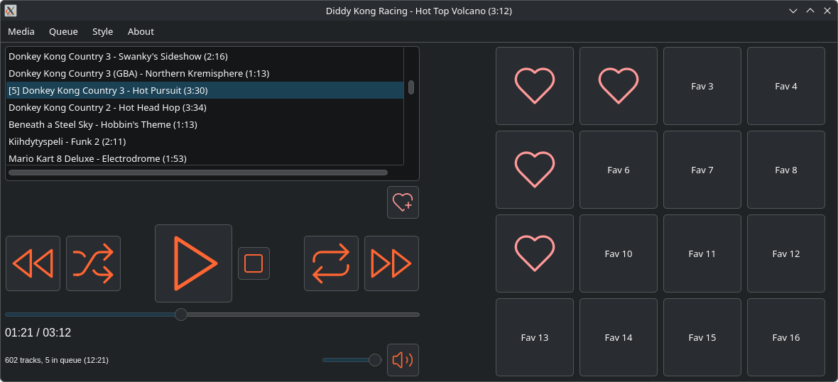 - Paina sydänpainiketta lisätäksesi jopa 16 kappaletta "pikavalintaan". Painamalla pikavalintapainiketta, suosikkisi lähtee soimaan välittömästi. Ei turhaa ajanhukkaa hakemisen kanssa, ei turhaa selailua. Voi poistaa ei-toivotut kappaleet pikavalinnasta hiiren oikealla painikkeella.